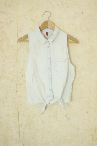 H&M BLUE LIGHT WASH DENIM LOOK TIE FRONT SUMMER SHIRT TOP SIZE 12 [ENDED]
