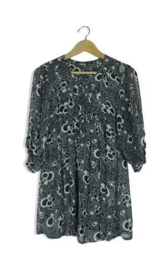 ATMOSPHERE BLACK & WHITE FLORAL SEMI SHEER TRAPEZE BLOUSE TOP SIZE 10 [ENDED]