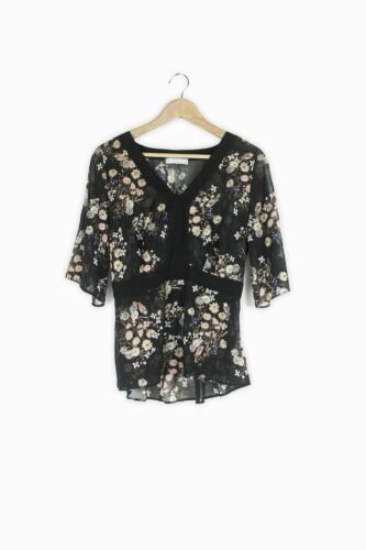 RED HERRING ORIENTAL PATTERN FLORAL SEMI SHEER BLOUSE SIZE 14 [ENDED]
