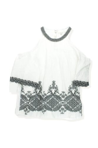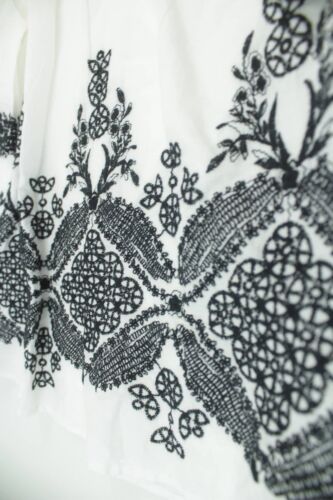 RIVER ISLAND WHITE & BLACK EMBROIDERED BOHO FOLK COLD SHOULDER SUMMER BLOUSE ... [ENDED]