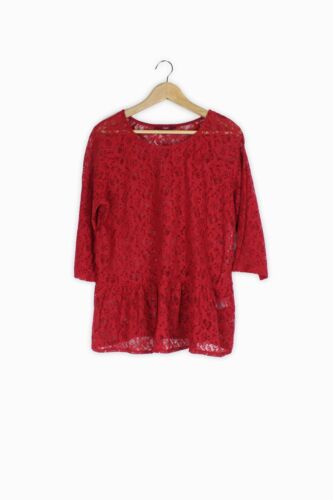 NEXT RED LACE PEPLUM BLOUSE SEMI SHEER TOP SIZE 16 [ENDED]