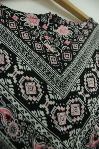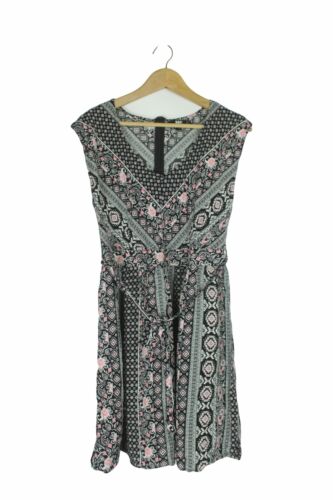 ME BLACK WHITE & PINK FLORAL V NECK TEA DRESS SIZE L [ENDED]