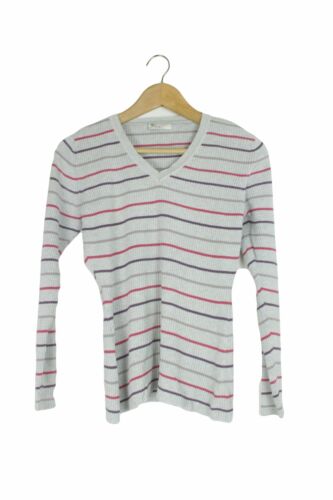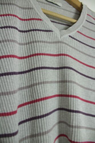 BHS GREY MULTI STRIPED RIBBED V NECK JUMPER SIZE 10 [ENDED]