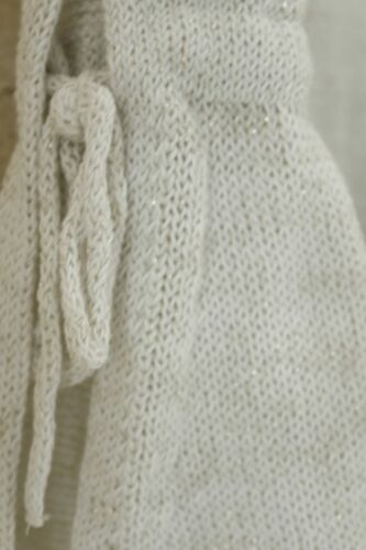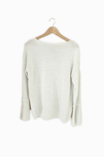 PAPAYA CREAM & SILVER THREAD TIE SPLIT SLEEVE JUMPER TOP SIZE M [ENDED]