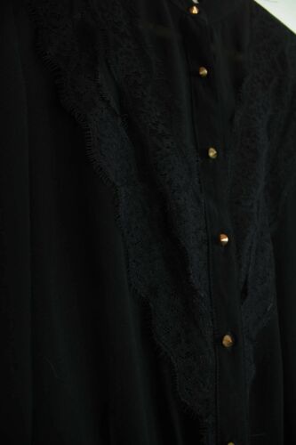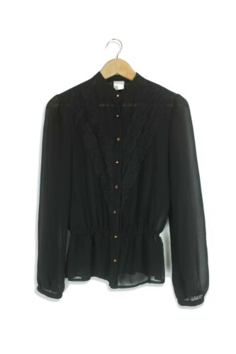 GEORGE BLACK SEMI SHEER LACE FRILL ROMANTIC BLOUSE TOP SIZE 8 [ENDED]