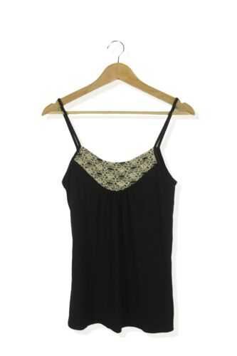 C.M.D BLACK & BEIGE TEXTURE DETAIL VEST SUMMER TOP SIZE 12 [ENDED]