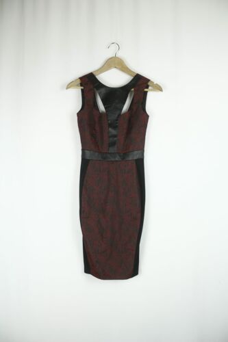 ASOS RED & BLACK FAUX LEATHER PANEL CUT OUT PENCIL DRESS SIZE 4 PETITE [ENDED]