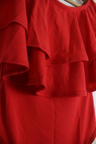 NEW LOOK RED FRILL BARDOT OFF SHOULDER LEOTARD BODYSUIT SIZE 6 [ENDED]