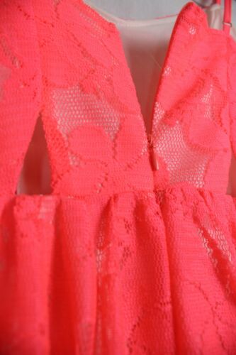LUSTRE BRIGHT FLUORESCENT PINK CUT OUT LACE SKATER DRESS SIZE 10 [ENDED]