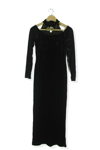 AMAZONE BLACK VELVET HIGH NECK BARDOT CHRISTMAS MAXI BODY CON DRESS SIZE 10 [ENDED]