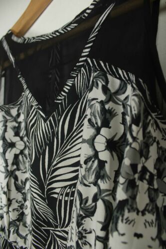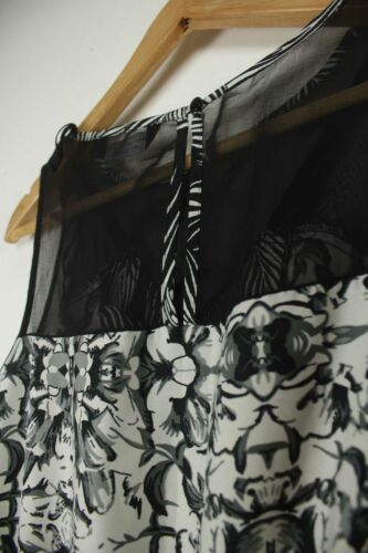DOROTHY PERKINS BLACK & WHITE FLORAL PATTERN SHEER DETAIL MAXI DRESS SIZE 10 [ENDED]