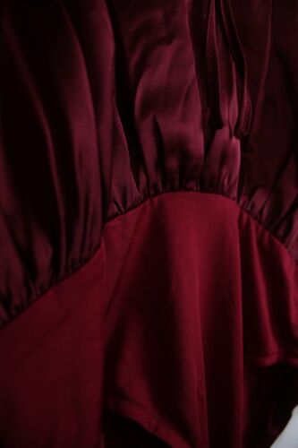VERA & LUCY DARK RED 'BORDEAUX' SATIN LOOK BODY SUIT BLOUSE SIZE M [ENDED]