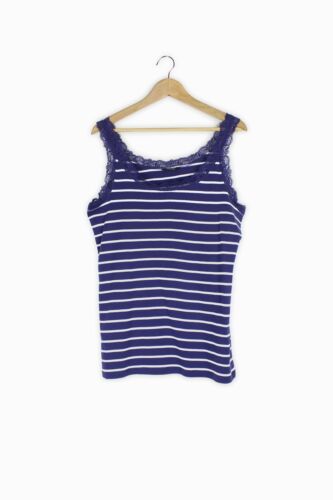 GEORGE BLUE & WHITE STRIPED LACE DETAIL SUMMER VEST TOP SIZE 18 [ENDED]