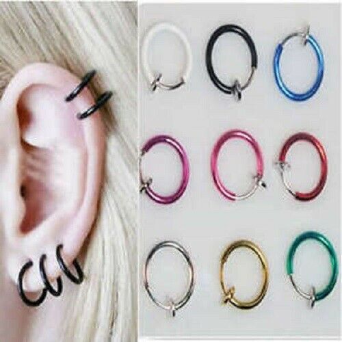 CLIP ON FAKE HOOP BOBY NOSE LIP EAR RING STUD EARRINGS PUNK GOTH PIERCING SEPTUM [ENDED]