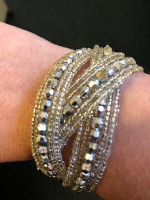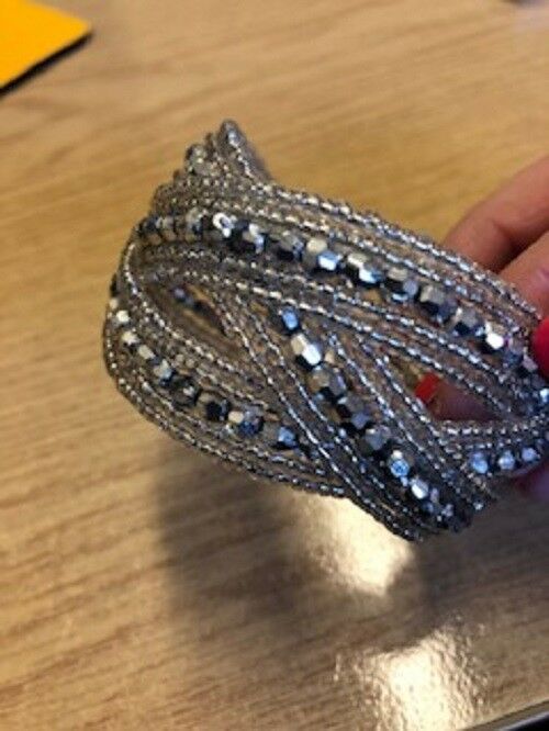 CUTE FASHION WOMEN BRACELET BEADED BANGLE CUFF SILVER [ENDED]