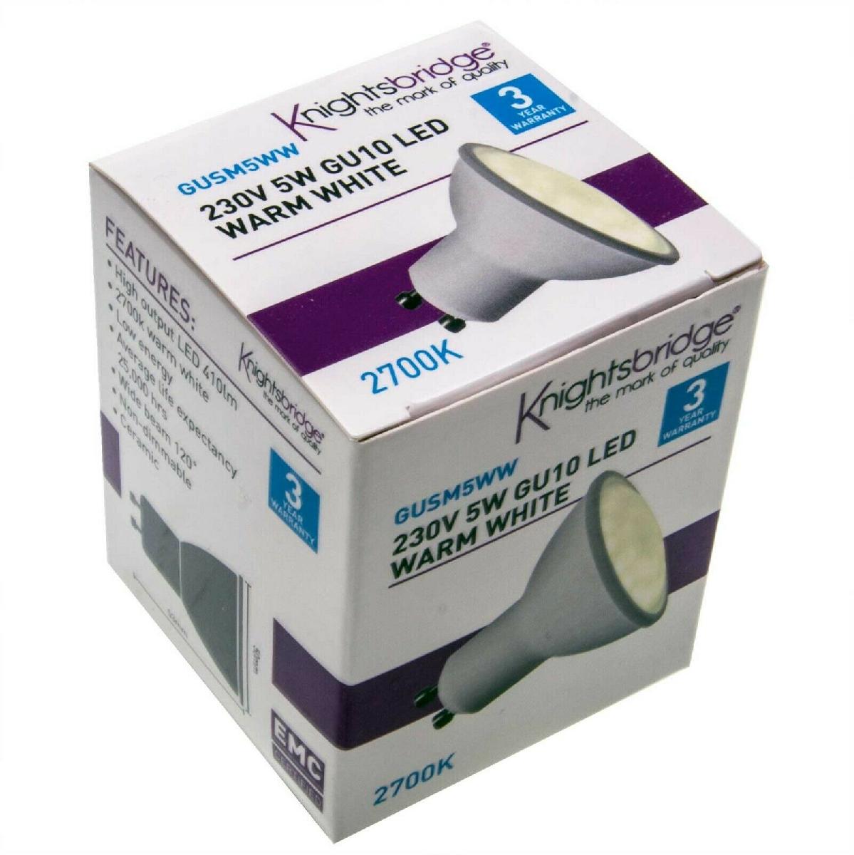 PACK OF 5 KNIGHTSBRIDGE GU10 CERAMIC LED LIGHT BULBS LAMP 5W 2700K WARM WHITE [ENDED]