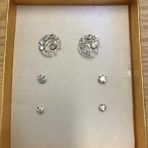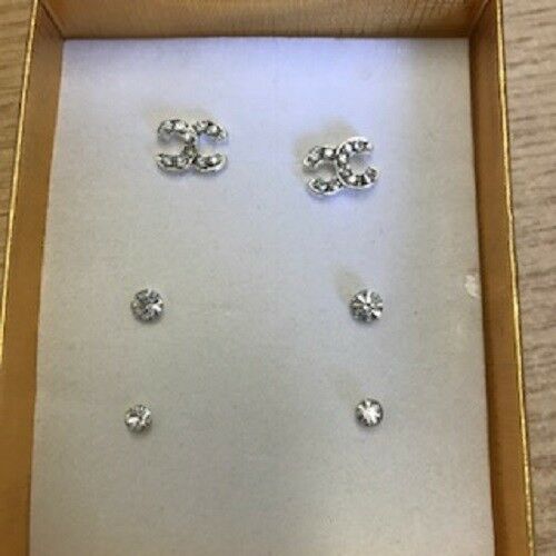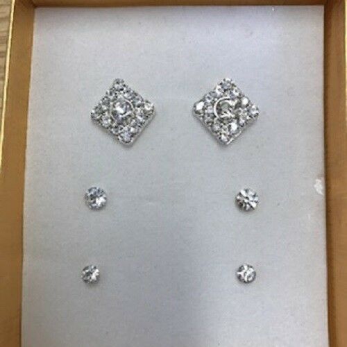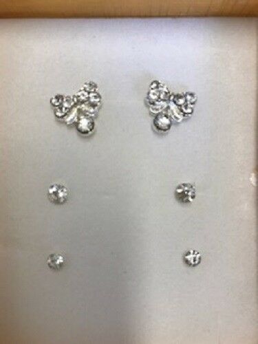 SPARKLE CZ CRYSTAL EARRING SET - SET OF THREE VARIOUS DESIGNS - PRETTY * BLING * [ENDED]