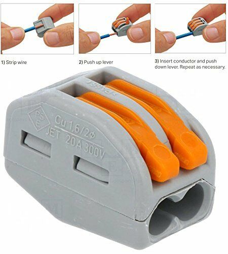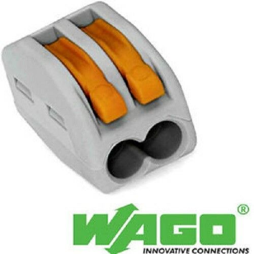 50 X 222-412 GENUINE WAGO 2 WAY SPRING LEVER CABLE WIRE TERMINAL CONNECTOR BLOCK [ENDED]