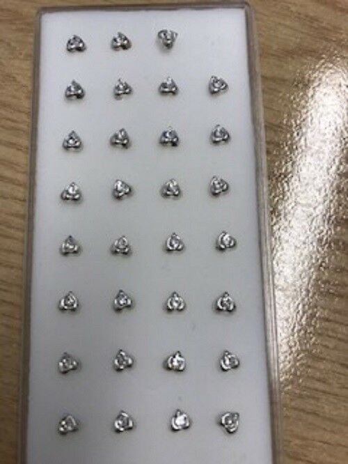 925 STERLING SILVER & CZ CRYSTAL HEART NOSE STUD / PIN / STUDS / PINS / [ENDED]