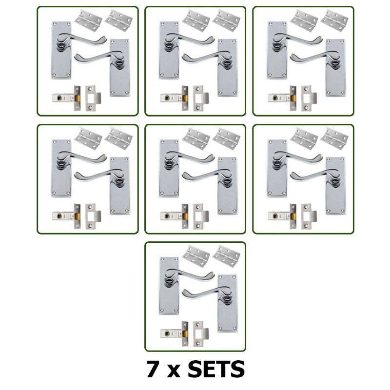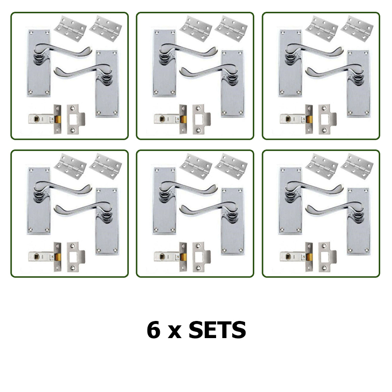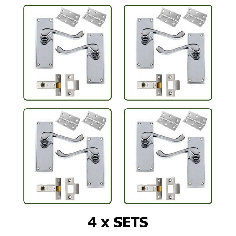 PAIRS OF INTERNAL DOOR HANDLES - SCROLL LEVER LATCH SET CHROME WITH FIXINGS [ENDED]