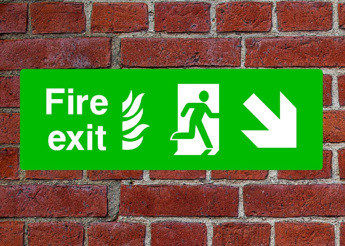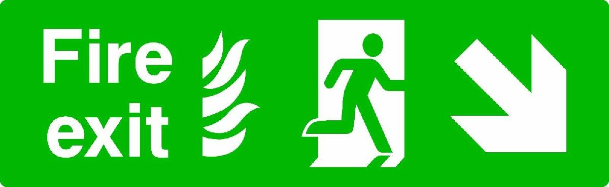 FIRE EXIT DOWN RIGHT ARROW SIGN OR SELF ADHESIVE VINYL STICKER EMER22 45CMX15CM [ENDED]