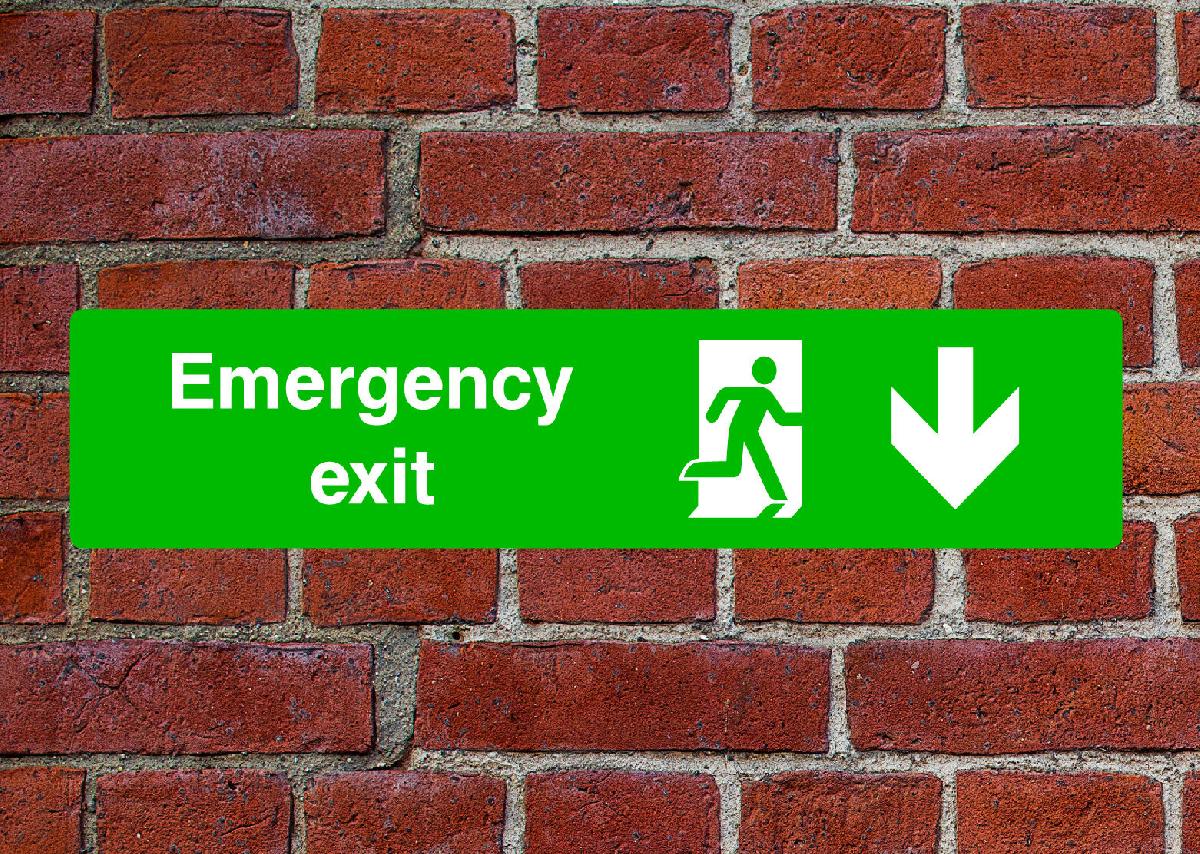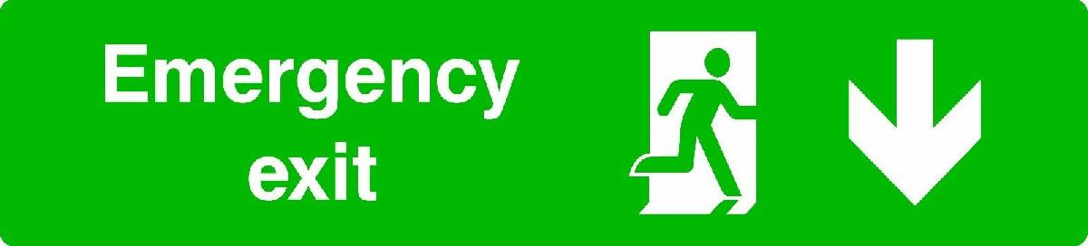 FIRE EXIT WITH DOWN ARROW SIGN OR SELF ADHESIVE VINYL STICKEREMER26 55CMX12.5CM [ENDED]