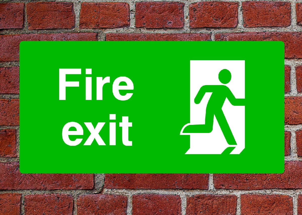 FIRE EXIT RIGHT HSE SIGN HEALTH & SAFETY EMER35 40CM X 20CM PVC ALI VINYL [ENDED]