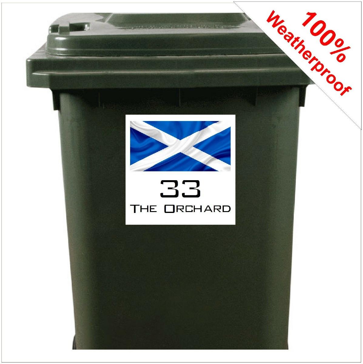 SCOTLAND FLAG CUSTOM WHEELIE BIN IDENTIFICATION STICKER PATRIOTIC NAME & ADDRESS [ENDED]