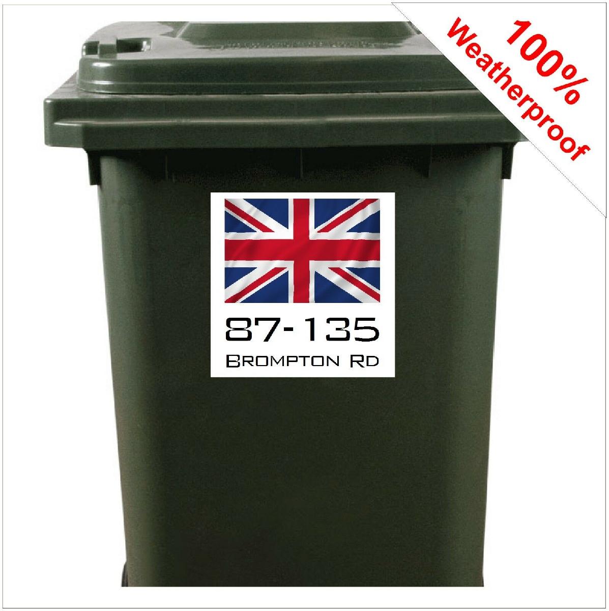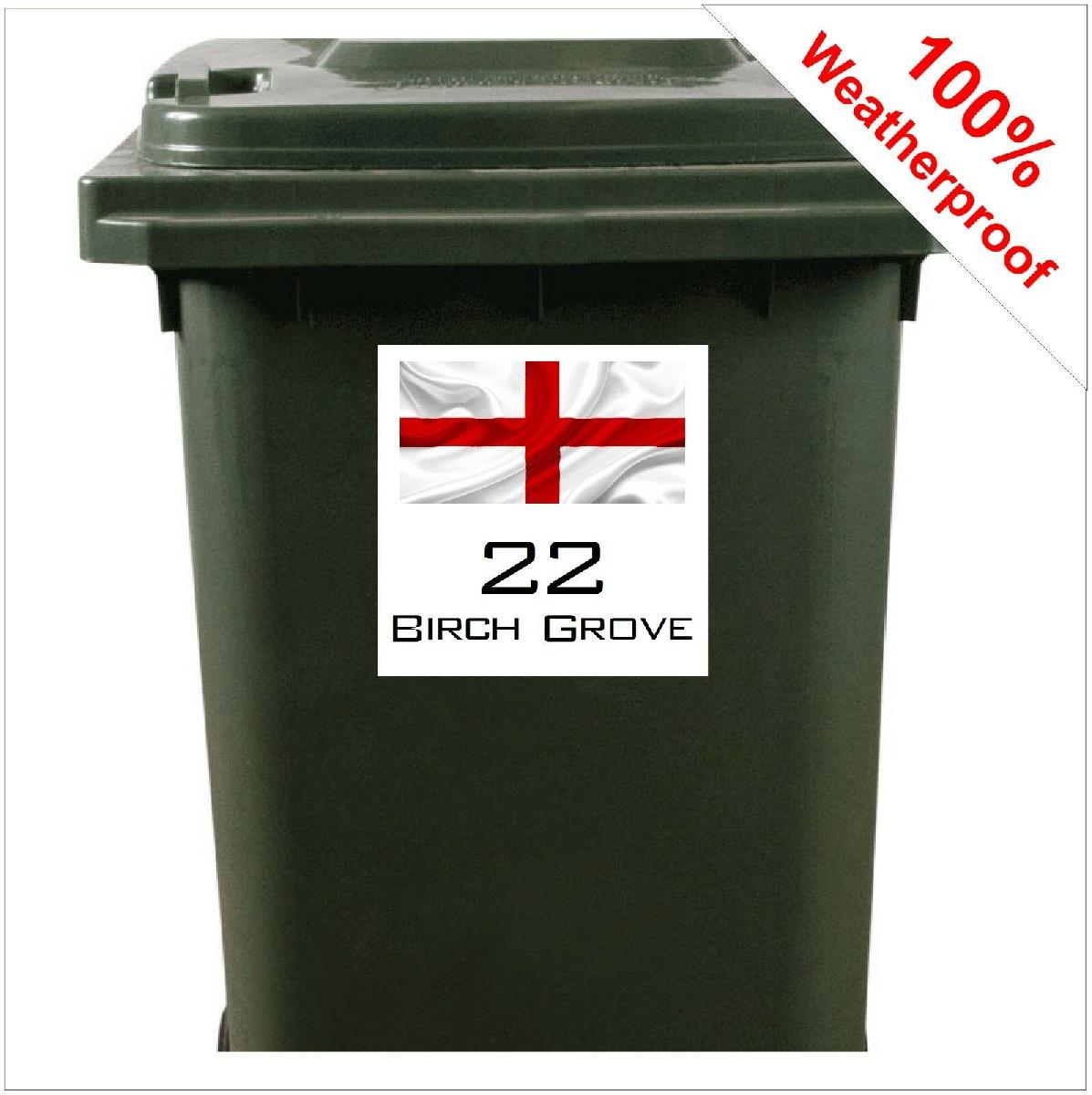 ENGLAND FLAG CUSTOM WHEELIE BIN IDENTIFICATION STICKER PATRIOTIC NAME & ADDRESS [ENDED]