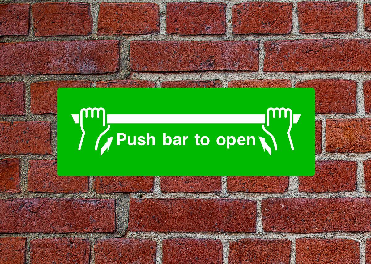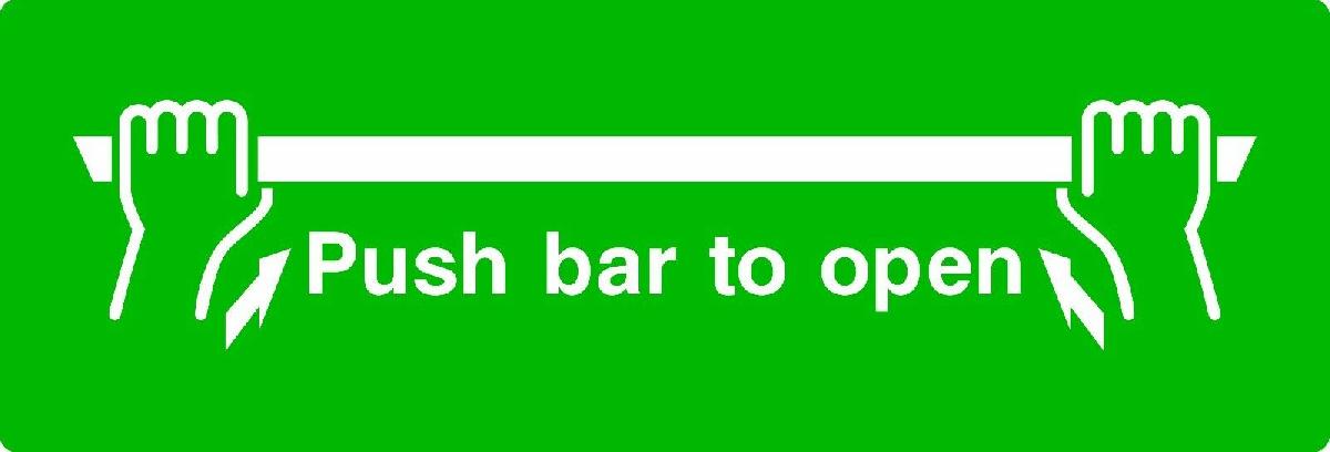 PUSH BAR TO OPEN SIGN OR SELF ADHESIVE VINYL STICKER EMER44 45CM X 15CM [ENDED]