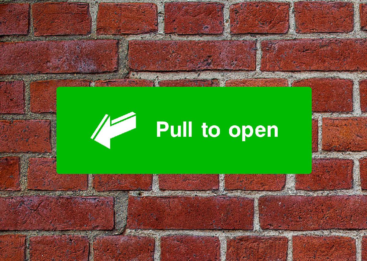 PULL TO OPEN SIGN OR SELF ADHESIVE VINYL STICKER EMER40 45CM X 15CM [ENDED]