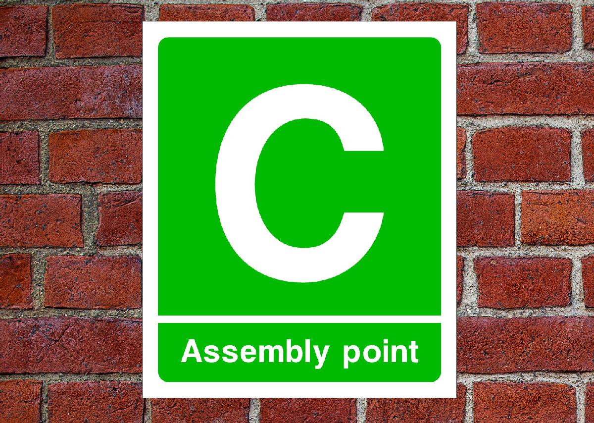 FIRE ASSEMBLY POINT C SIGN OR SELF ADHESIVE VINYL STICKER EMER84 25 X 30CM [ENDED]