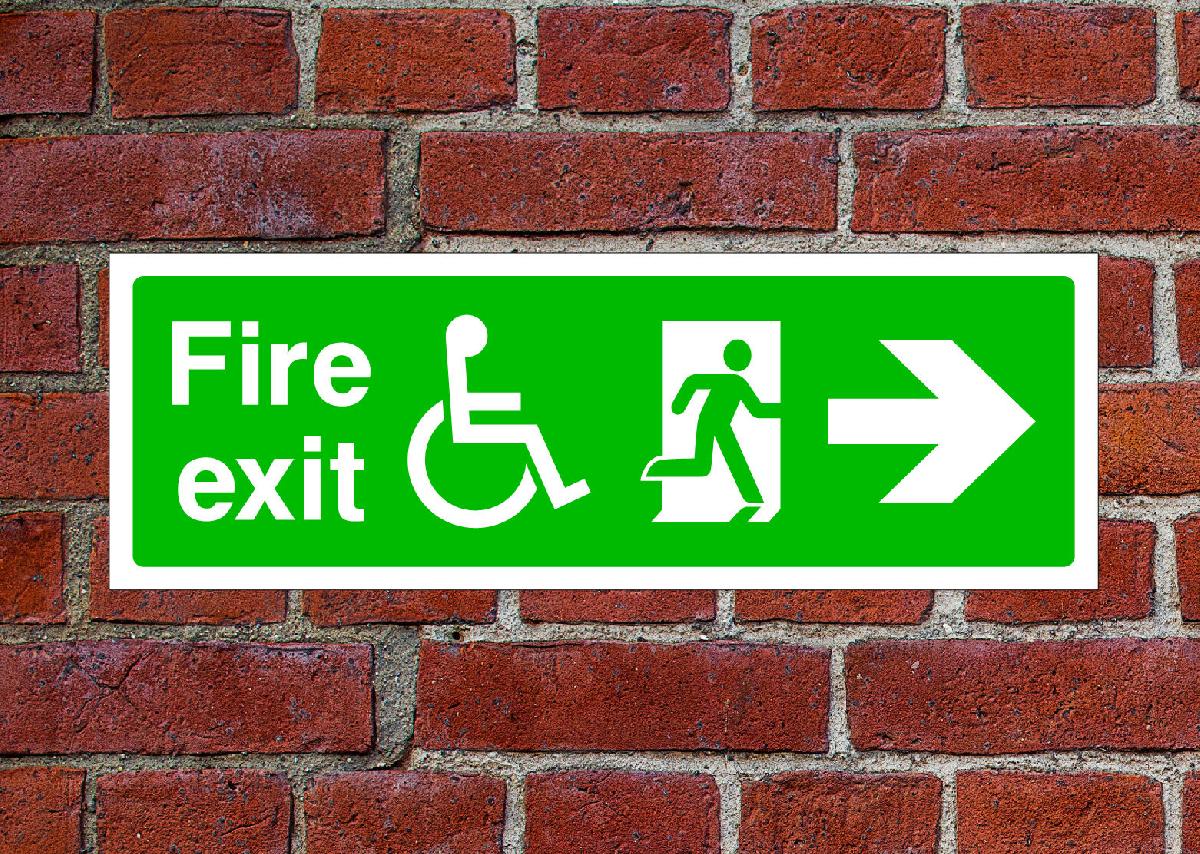 FIRE EXIT RIGHT SIGN OR SELF ADHESIVE VINYL STICKER EMER65 15CM X 45CM [ENDED]