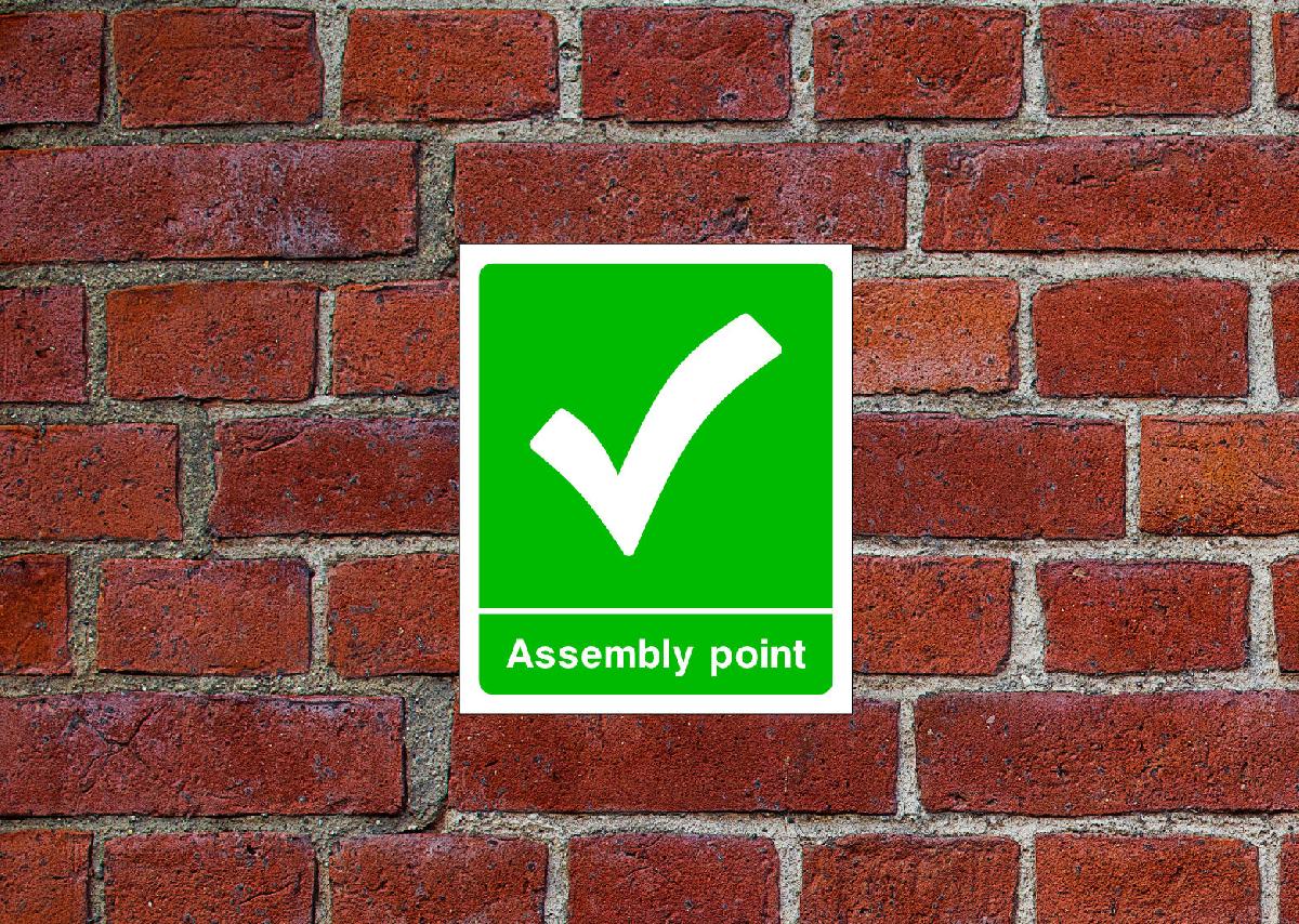 FIRE ASSEMBLY POINT HSE SIGN OR SELF ADHESIVE VINYL STICKER EMER74 25X 30CM [ENDED]
