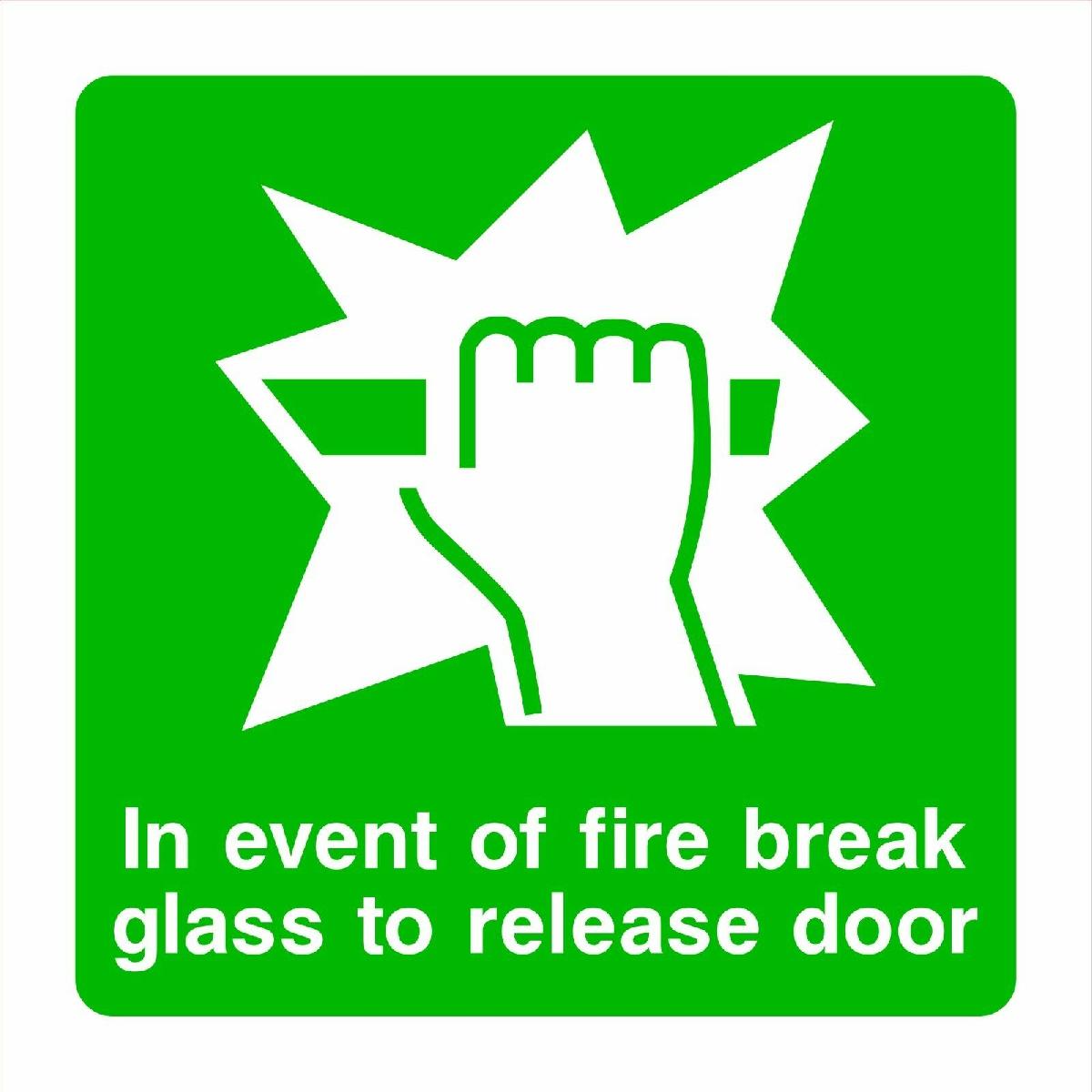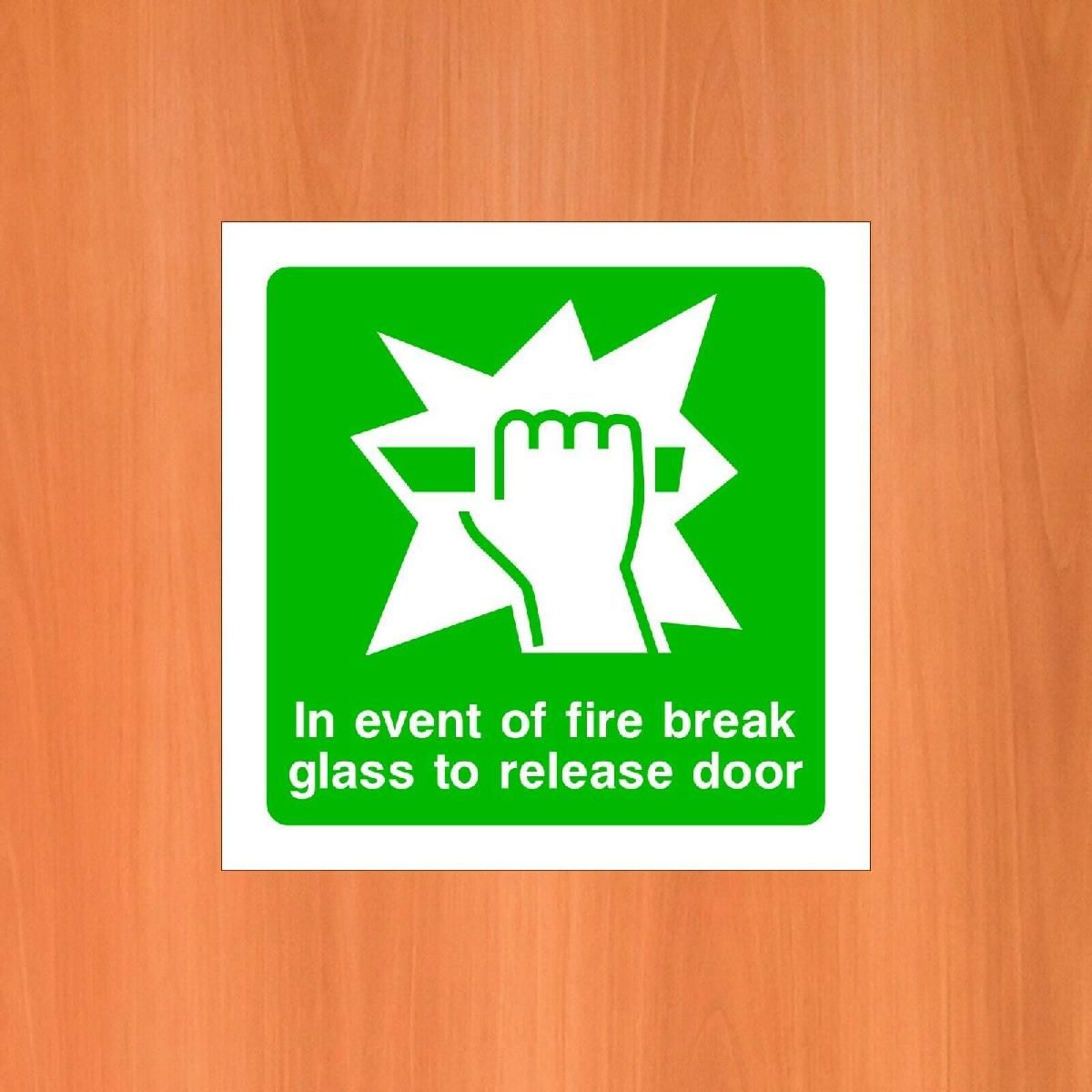 FIRE BREAK GLASS DOOR SIGN OR SELF ADHESIVE VINYL STICKER EMER62 20 X 20CM [ENDED]