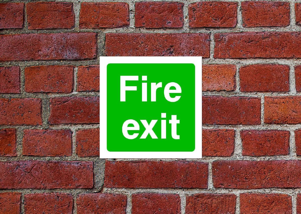 FIRE EXIT SIGN OR SELF ADHESIVE VINYL STICKER EMER58 20CM X 20CM [ENDED]