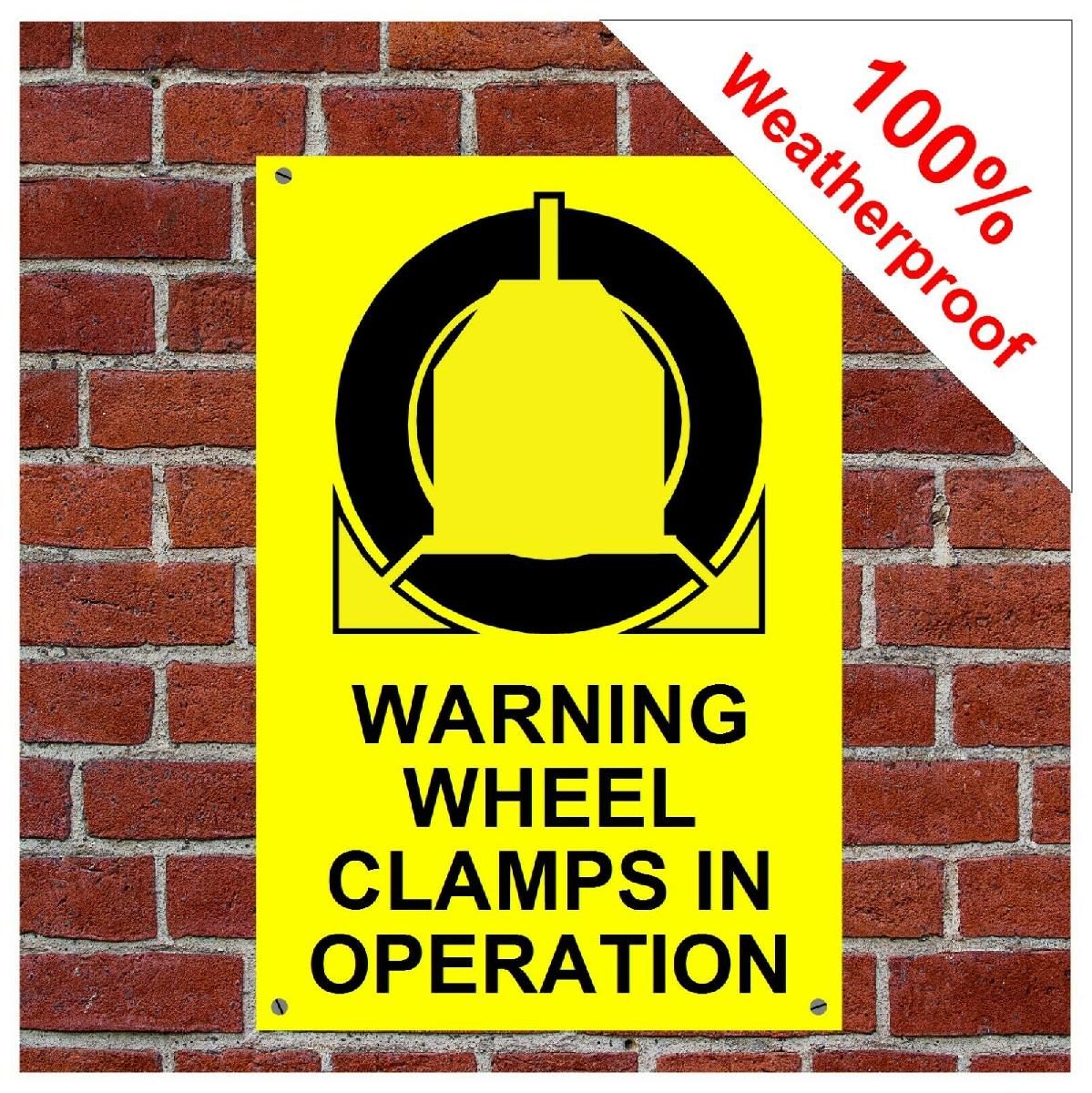 WARNING WHEEL CLAMPS IN OPERATION SIGN OR STICKER 9069 DURABLE AND WEATHERPROOF [ENDED]