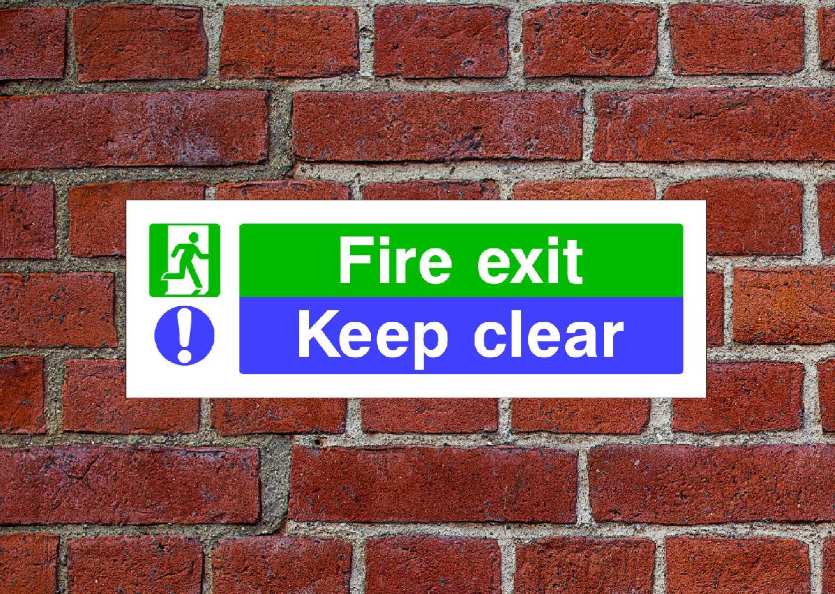 FIRE EXIT KEEP CLEAR SIGN OR SELF ADHESIVE VINYL STICKER EMER48 45CM X 15CM [ENDED]