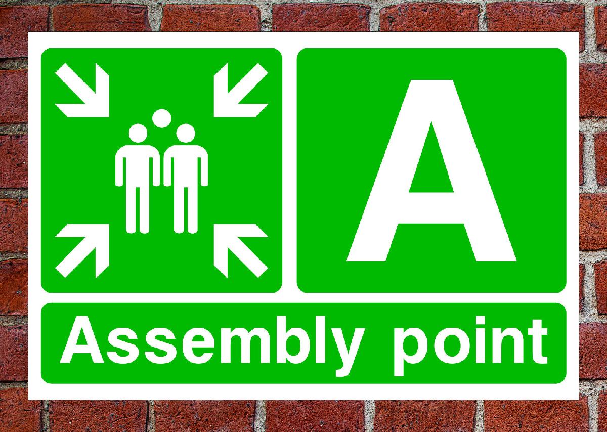 FIRE ASSEMBLY POINT A SIGN OR SELF ADHESIVE VINYL STICKER EMER79 60 X 40CM [ENDED]