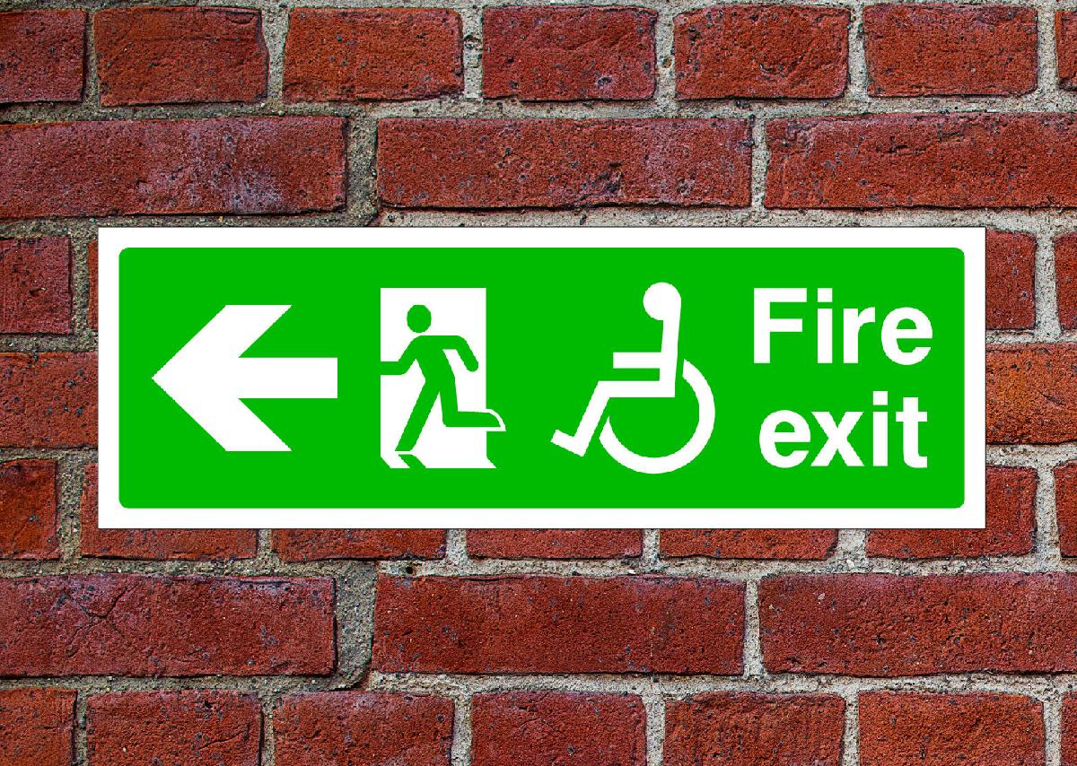 FIRE EXIT LEFT SIGN OR SELF ADHESIVE VINYL STICKER EMER66 15CM X 45CM [ENDED]