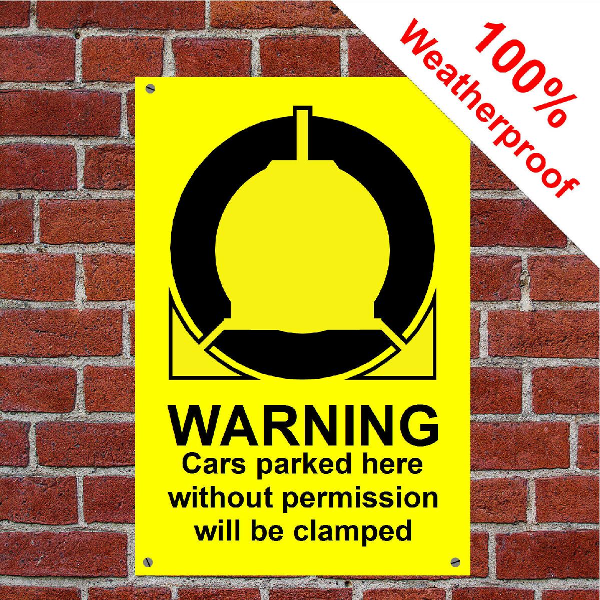 WARNING CARS PARKED HERE WILL BE CLAMPED SIGN OR STICKER 9066 WEATHERPROOF [ENDED]