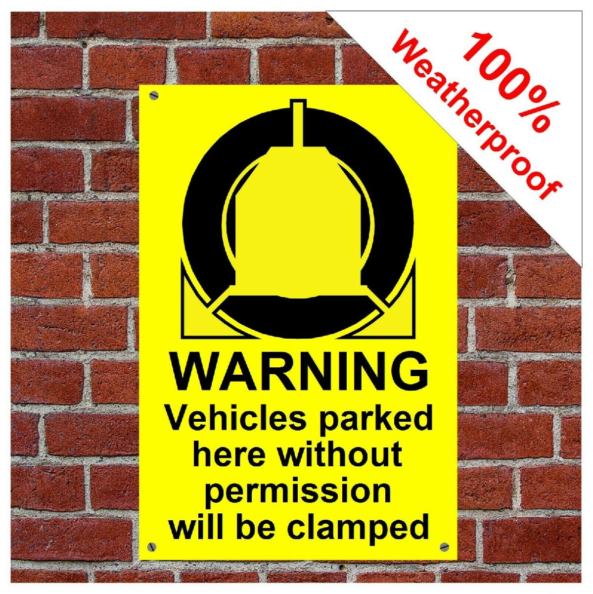 WARNING VEHICLES PARKED HERE WILL BE CLAMPED SIGN OR STICKER 9068 WEATHERPROOF [ENDED]