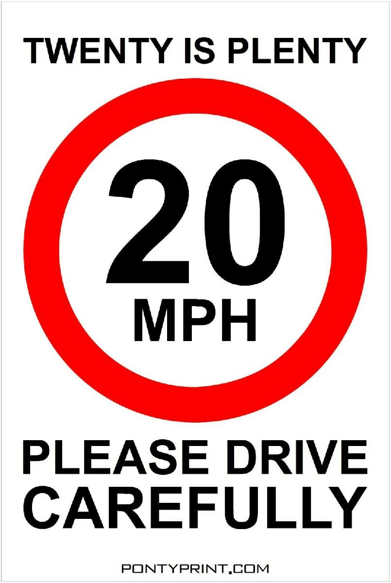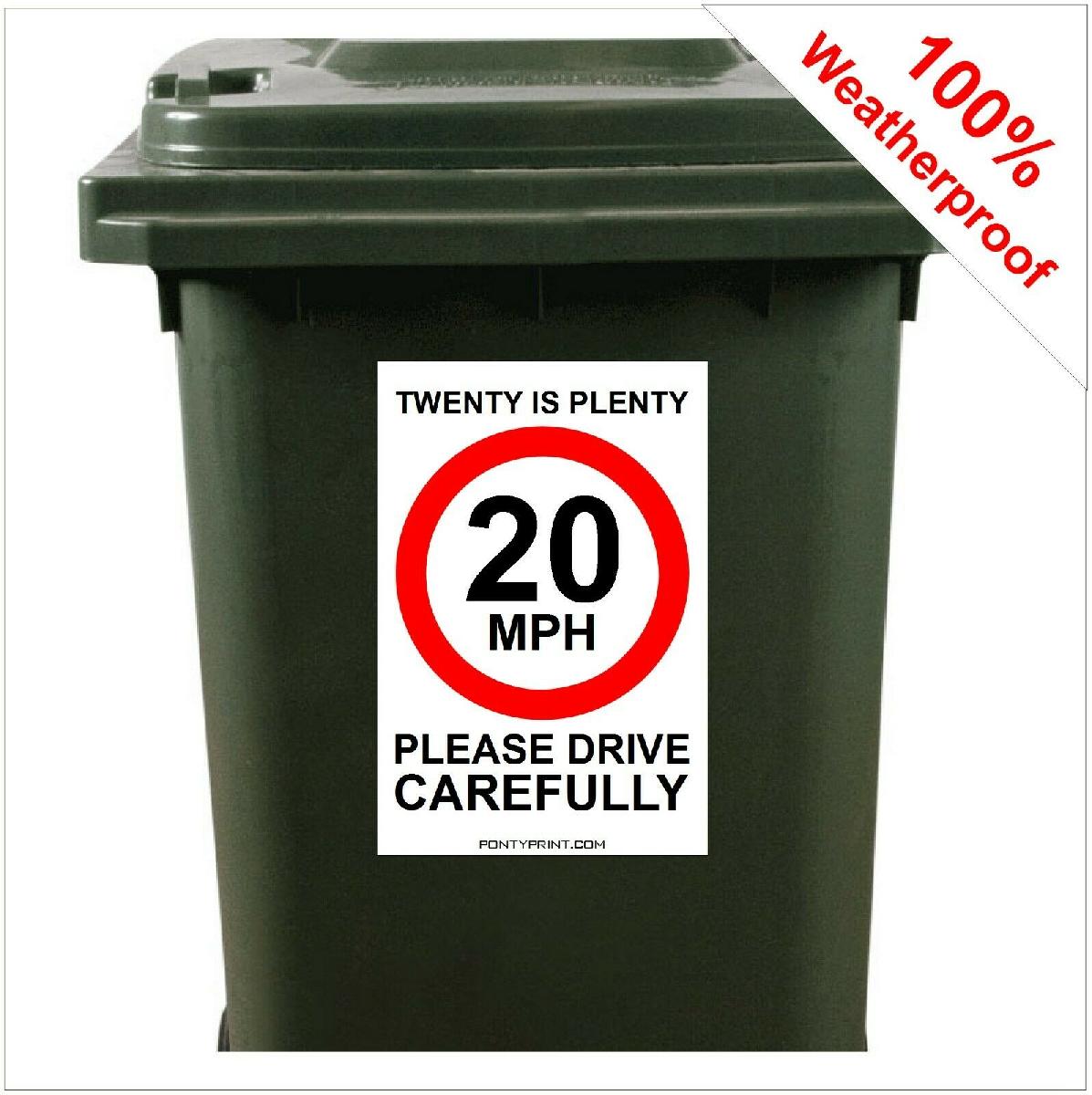 TWENTY IS PLENTY 20MPH ROAD SAFETY WHEELIE BIN STICKER SIGN 9418 30CM X 20CM [ENDED]