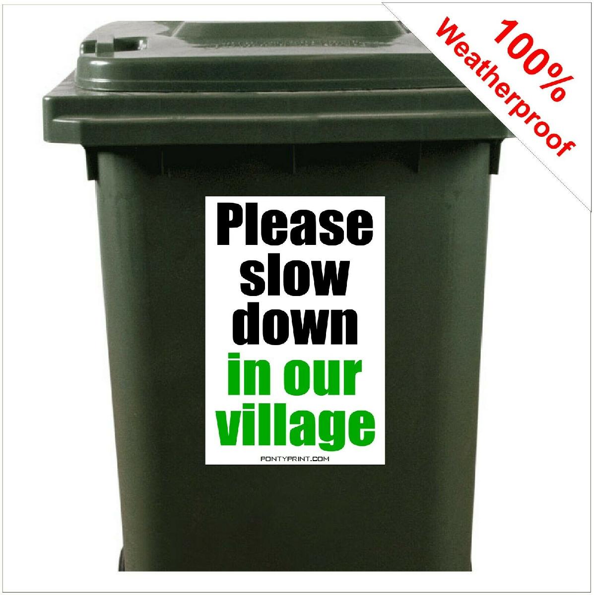 PLEASE SLOW DOWN IN OUR VILLAGE SAFETY WHEELIE BIN STICKER SIGN 9425 30X20CM [ENDED]