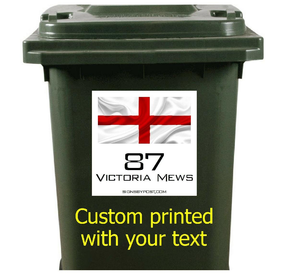 CUSTOM WHEELIE BIN ENGLAND LABELS PATRIOTIC NAME & ADDRESS STICKERS 8X8" 9305 [ENDED]