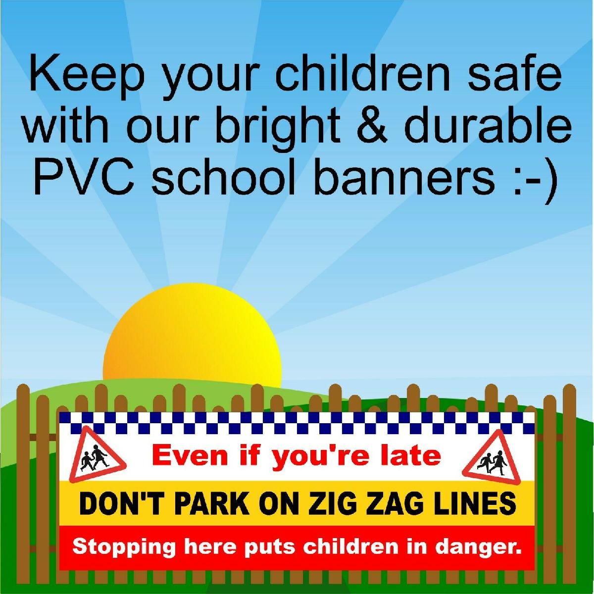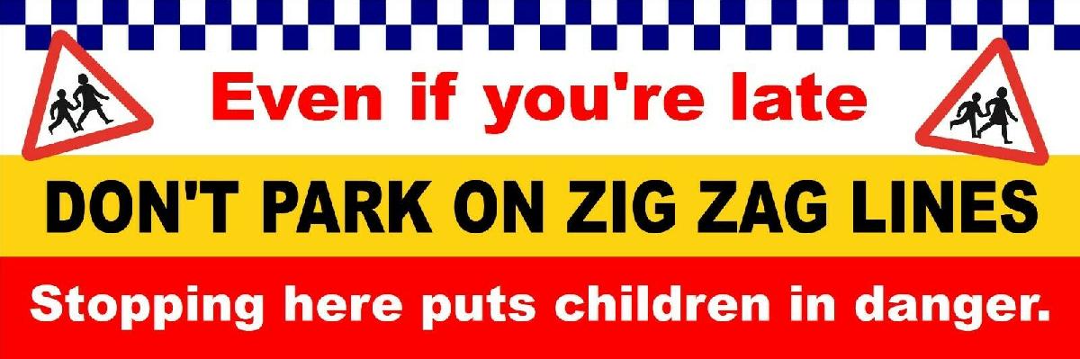 DON'T PARK ON ZIG ZAG LINES SCHOOL BRIGHT ROAD SAFETY BANNER 9395 SAFER SCHOOLS [ENDED]