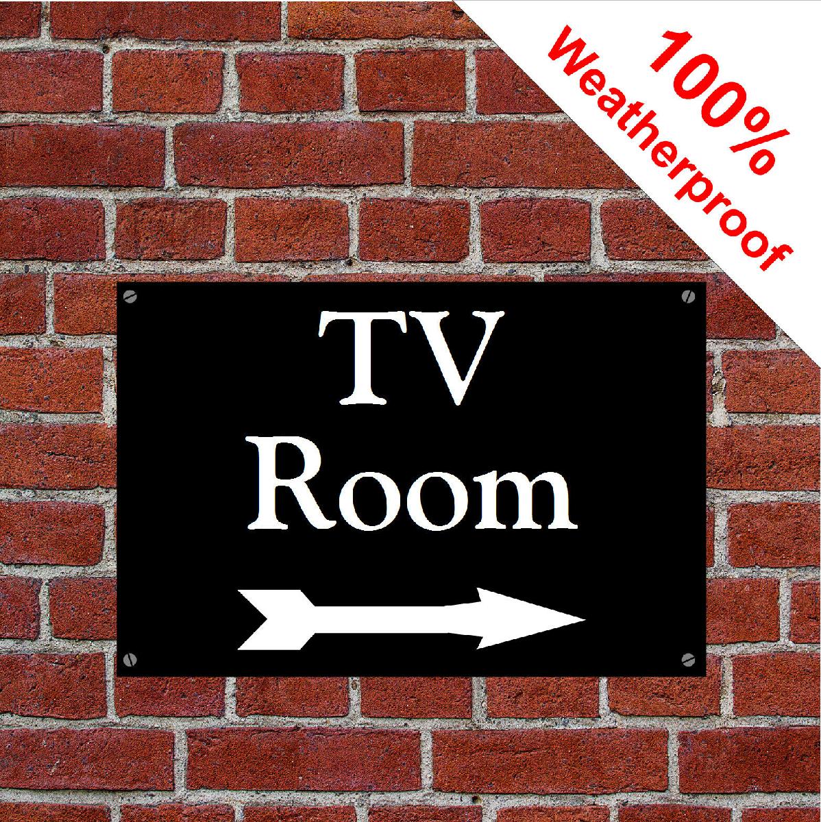 TV ROOM SIGN WITH RIGHT ARROW 1983WBK DURABLE AND WEATHERPROOF [ENDED]
