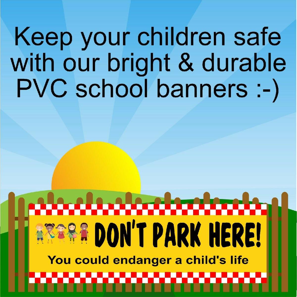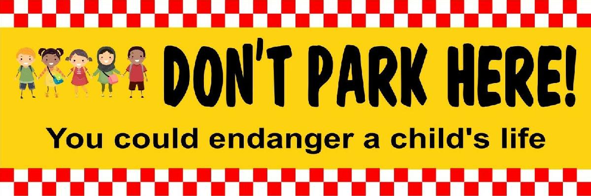 DON'T PARK HERE BRIGHT SCHOOL ROAD SAFETY BANNER 9397 SAFER SCHOOLS AND ROADS [ENDED]