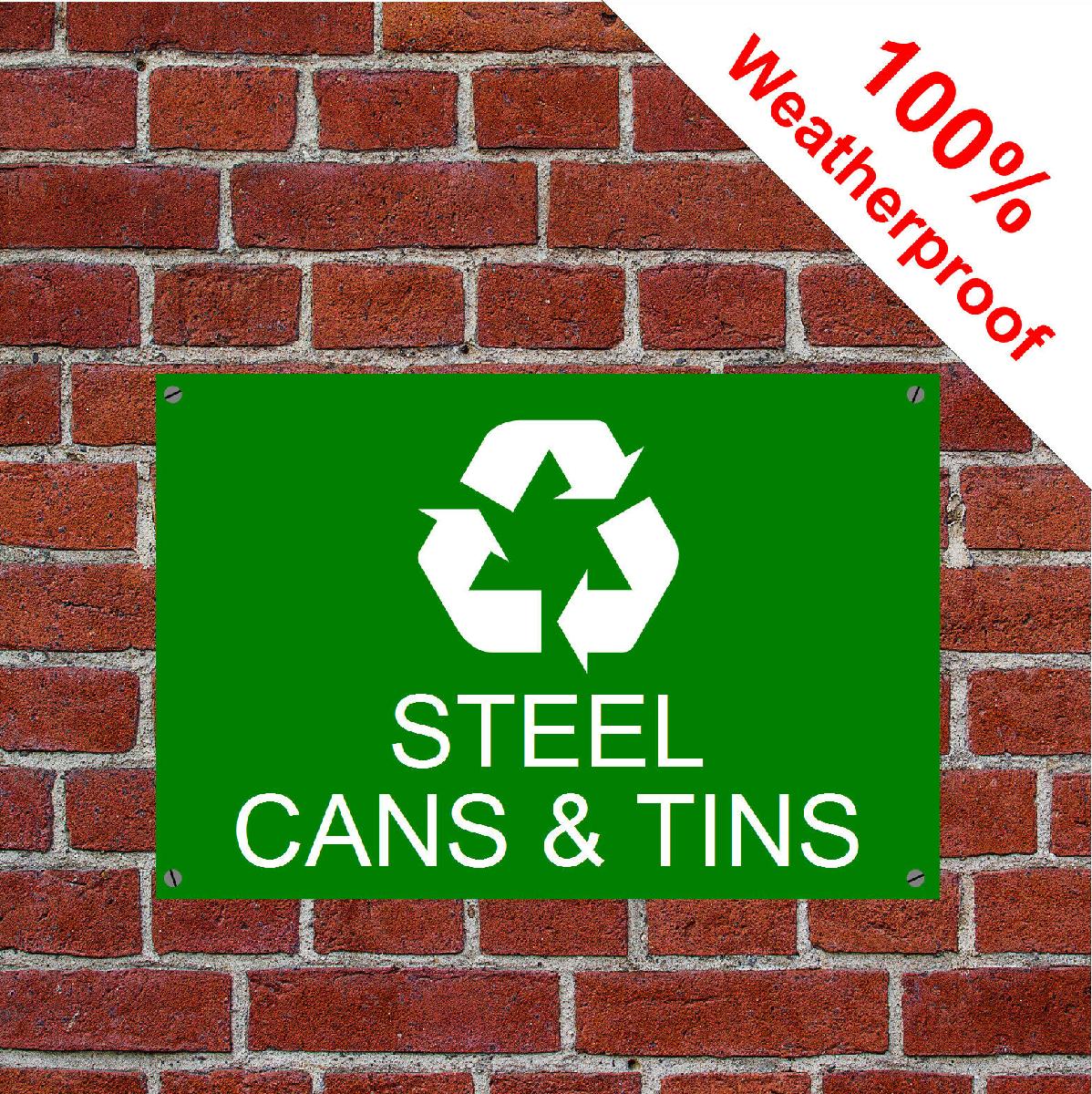 RECYCLE STEEL CANS & TINS SIGN 5008WDKGR EXTREMELY DURABLE AND WEATHERPROOF [ENDED]