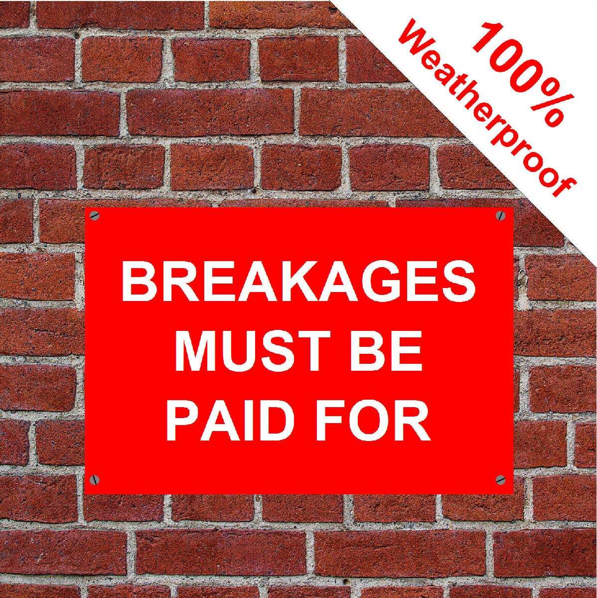 BREAKAGES MUST BE PAID FOR SIGN OR VINYL STICKER 5174WR DURABLE AND WEATHERPROOF [ENDED]